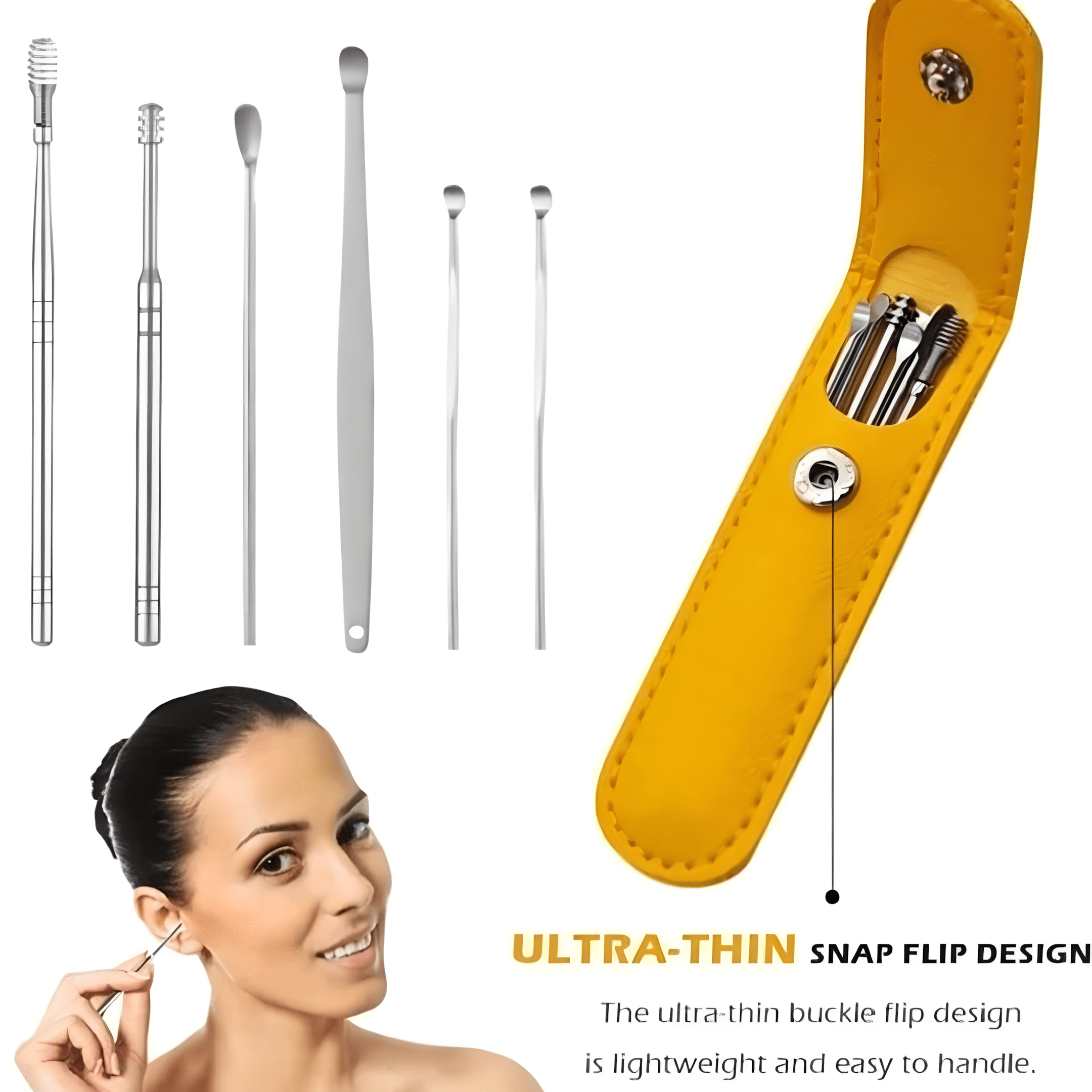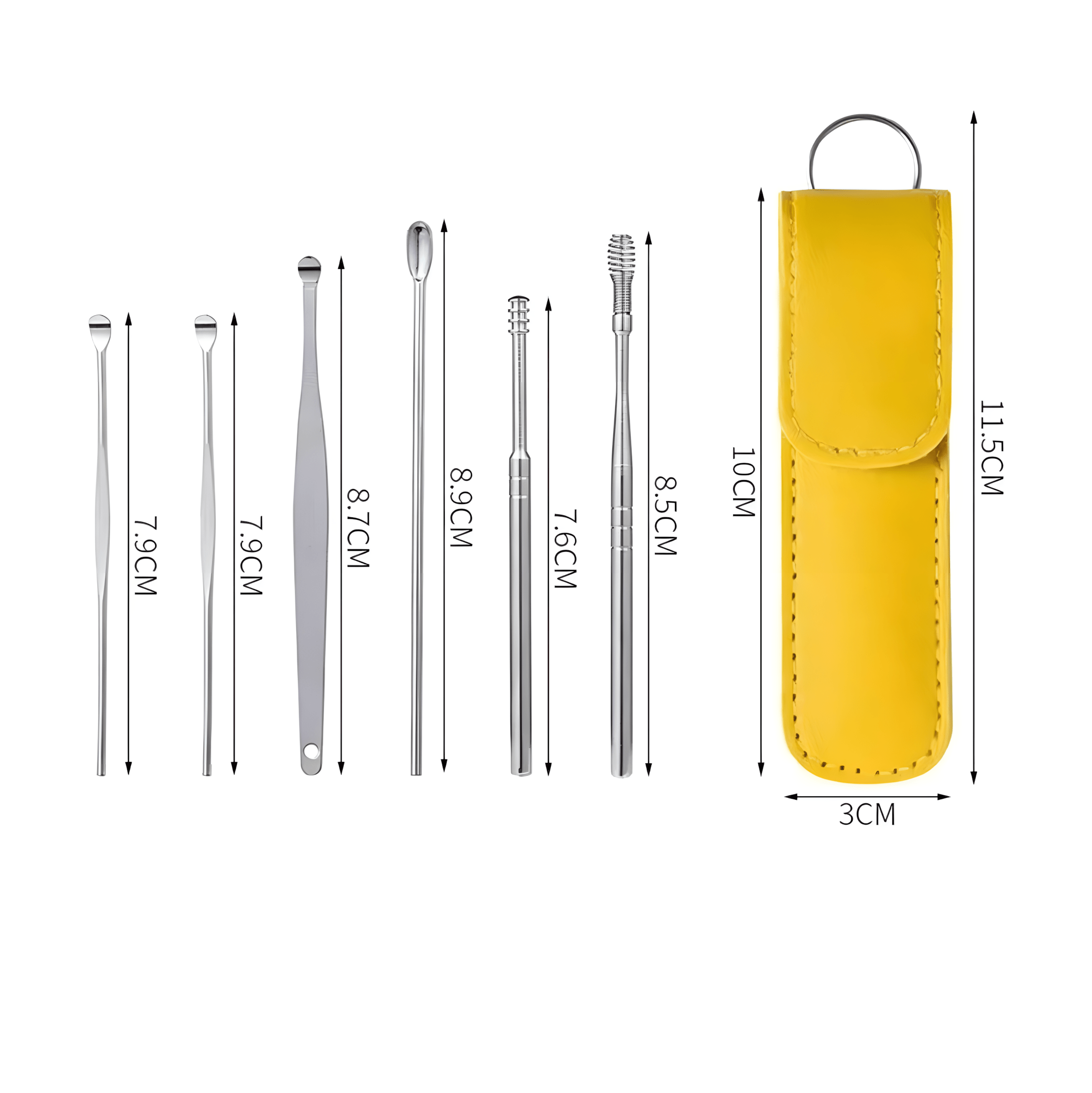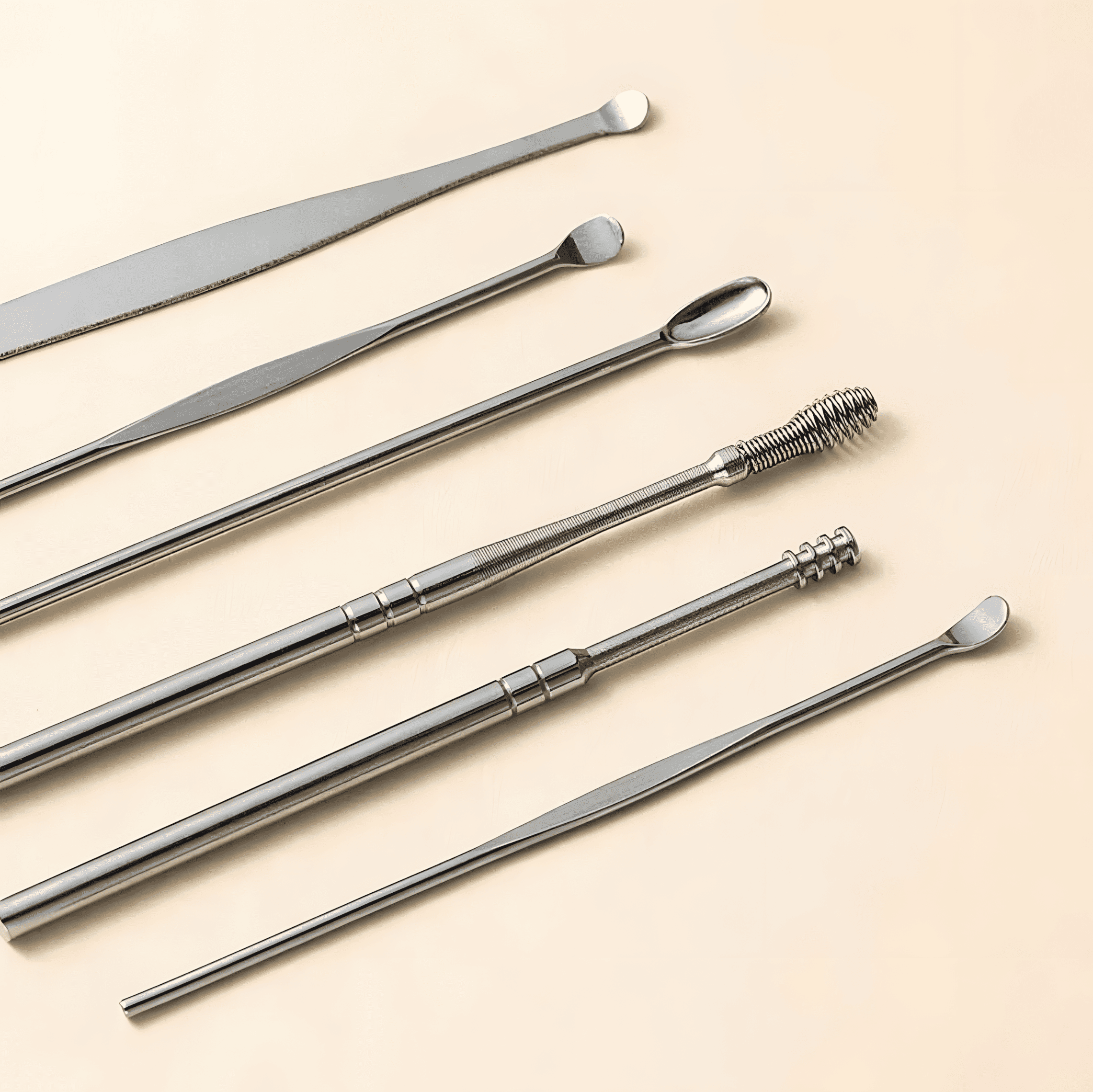 Variety of Specialized Tools: The kit typically includes 6-7 pieces, each crafted from surgical-grade stainless steel to ensure durability and prevent rust. The tools feature various shapes to address different types of ear wax and ear canals: